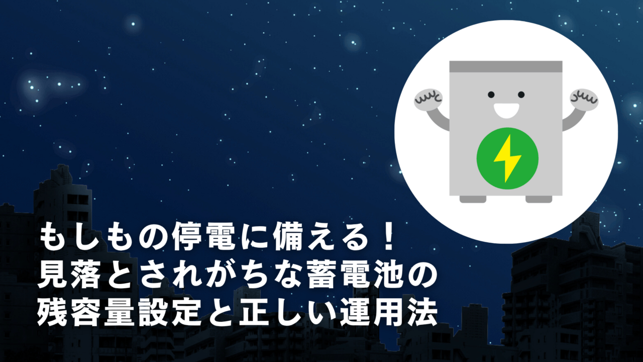 その大きな原因の一つが、蓄電池の「残容量設定」の見落としにあります。この設定を正しく理解し適切に使わなければ、せっかくの備えが必要な時に十分に機能しなくなることもあります。