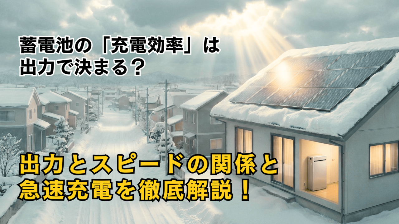 特に日照時間が短い冬場の北海道などでは、限られた晴れ間でいかに素早く電気を貯められるかが重要になるため、この「時間効率」は見逃せないポイントです。