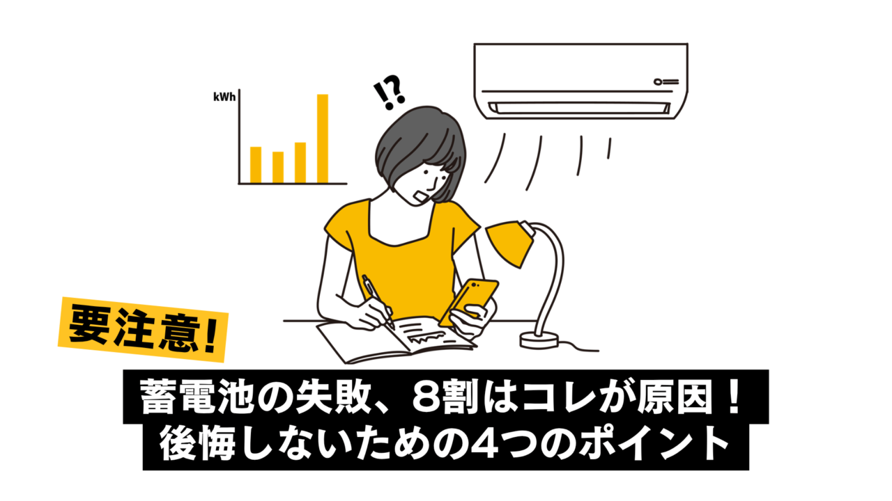 成功のポイントは、容量だけでなく、「停電時にどの家電をどれだけ使いたいか」を具体的にイメージすることですです。また、電力単価の上昇についても考慮しておきましょう。