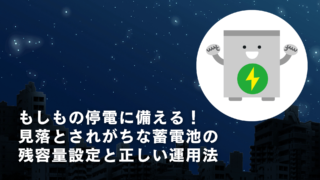 蓄電池の容量は、kWh(キロワットアワー)という単位で表され、大きければ大きいほど、貯められる電気の量が増え、停電時の稼働時間が長くなります。